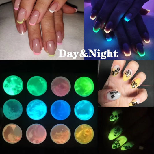 12 Boxes/Set Glow In Dark Glitter Nail Phosphorescent Powder Pigment Luminous Shining Halloween Christmas Nail Art Decorations
