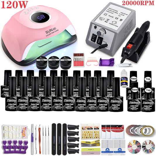 150W Nail Lamp Gift Set With 30 Colors Nail Gel Polish Manicure Set Acrylic Nail Kit With High Quality 20/12W Nail Drill Machine