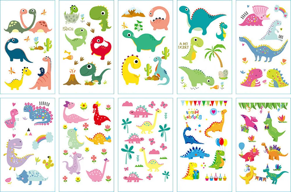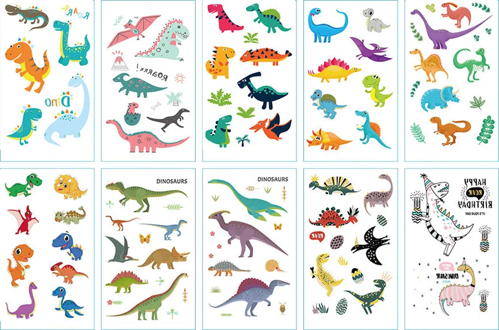 10pcs Dinosaur Tyrannosaurus Temporary Tatoo Sticker Waterproof Fake Tattoo Tattoos Hand Foot Tatouage For Kids Children Boy