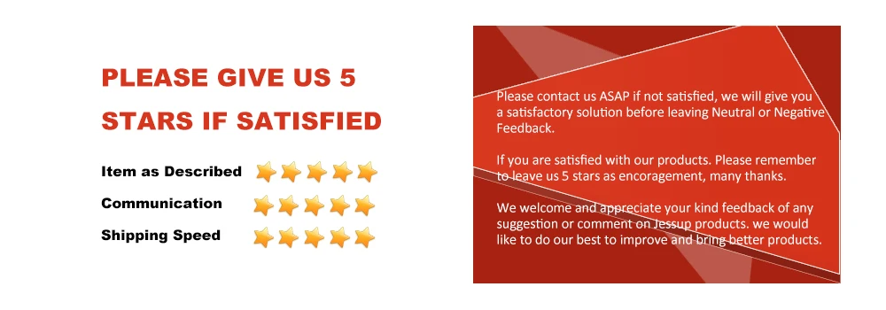 3. If you have a defective item,please contact us within 2 days from you receive the shipment .All return items must be returned with it’s original packaging and accessories.We will refund the money to you when we get the return items,Or replace item for you.